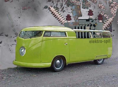 Rare photo of elektro-spif, apparently not a great success. In spite of weighing in excess of 17 tonnes, it could and would power a small town for several days. Sadly, The Spiflicator factory wired this particular one incorrectly, causing it to attract all manner of scrap metal from miles around, as soon as they switched it on. Unfortunately, the driver neglected to turn this spif off before fleeing for his life, and so it is somewhere in the middle of a huge ball of rusty scrap to this very day.